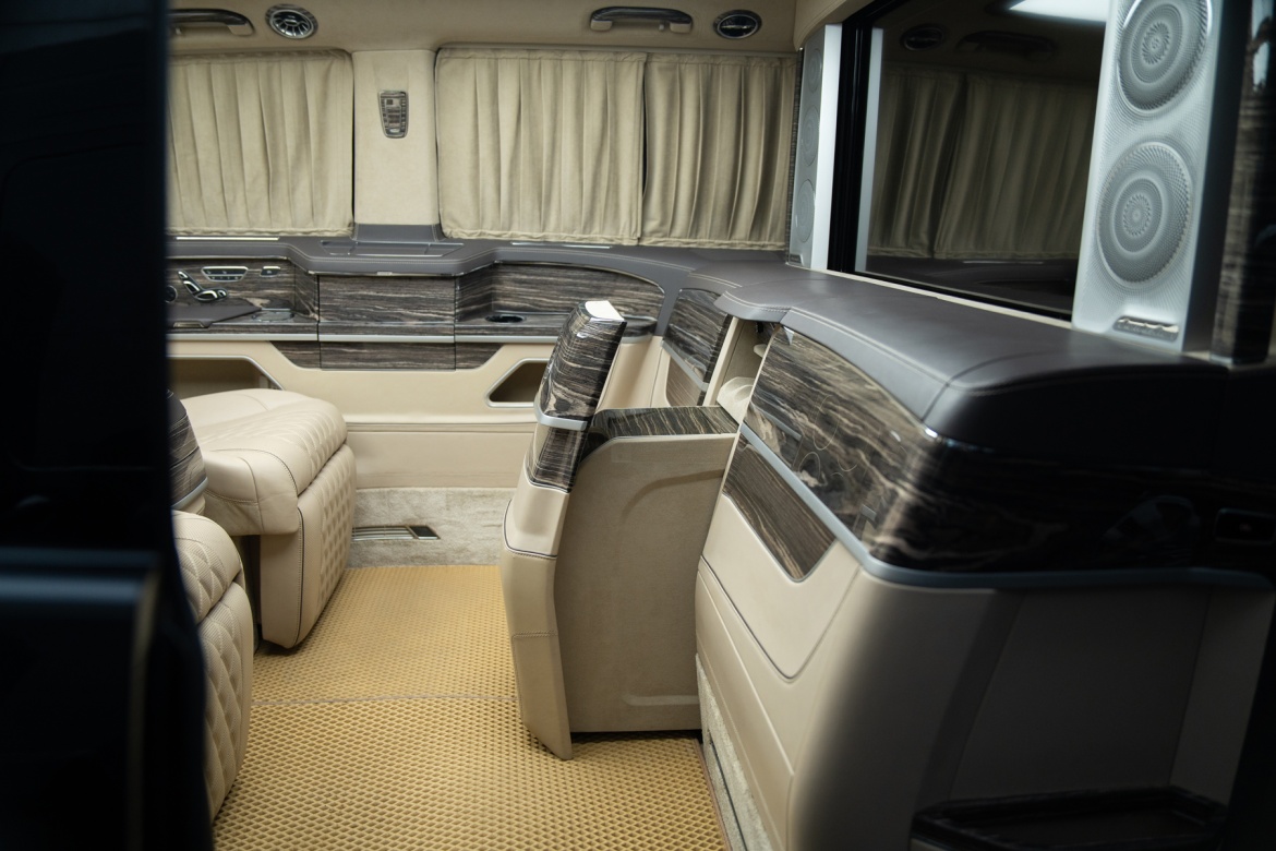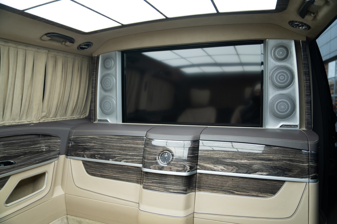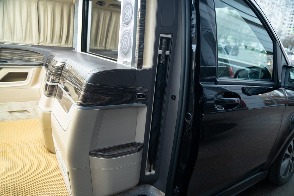 - Светонепроницаемые шторы по периметру салона на электроприводе (4 стекла)